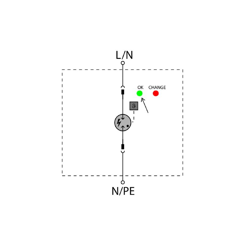 Versión Descargador de sobretensión, Baja tensión, Sin contacto remoto, Sin corriente de fuga, Monofásico, TN